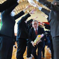 生徒を代表して生徒会役員から花束が贈呈されました。